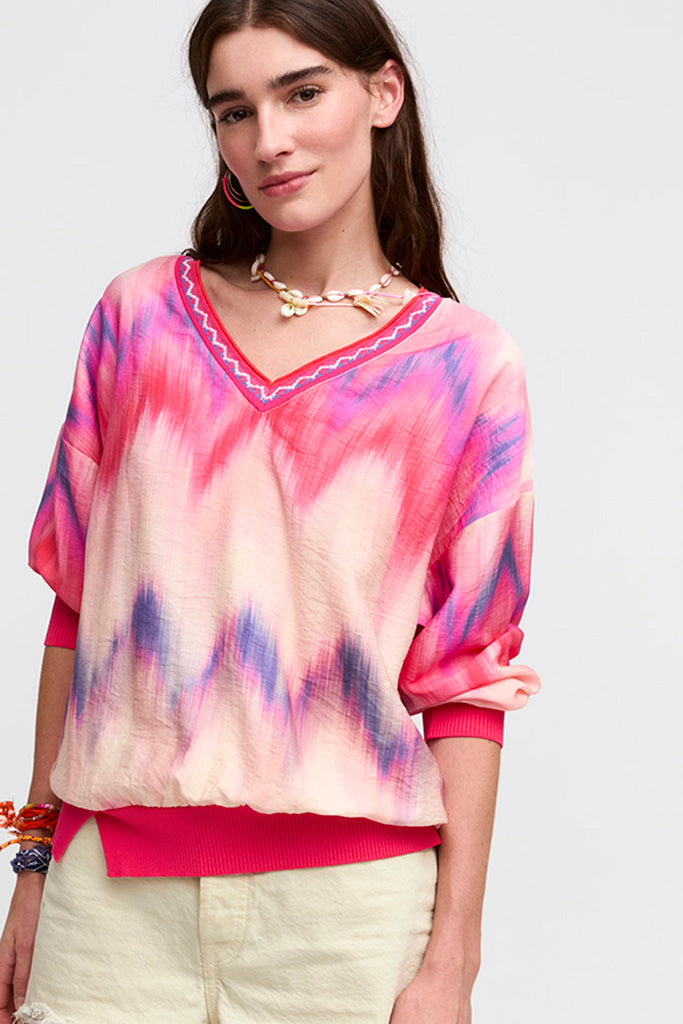We’re just a little bit in love with the Ona top from Aldo Martins. This pretty top blends the Barcelona brand’s signature sophisticated style with a playful, vintage-inspired tie-dye print. Cut for a relaxed, easy fit, it features a flattering V-neck and a soft pastel palette of pinks, violets, and cornflower blue that has us reminiscing of flower-filled, sunny Spring days.