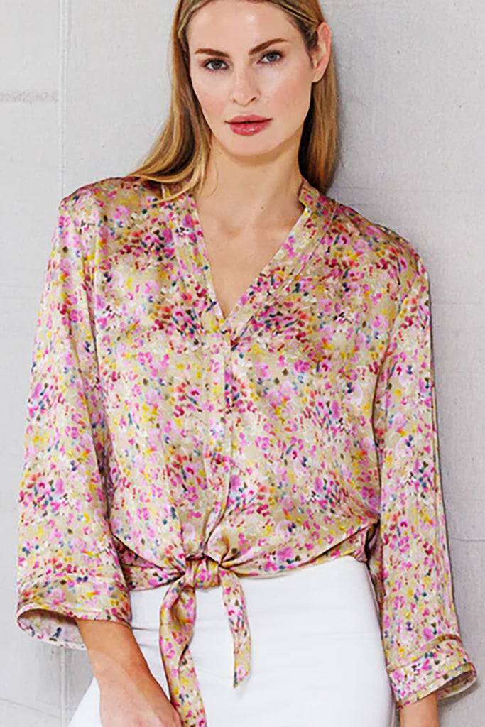 When a blouse does most of the work for you, getting dressed feels refreshingly simple. The Fit To Be Tied blouse from Go Silk is one such piece, thanks to a soft pastel print that gently echoes the dreamy palette of Monet without feeling literal or overdone.