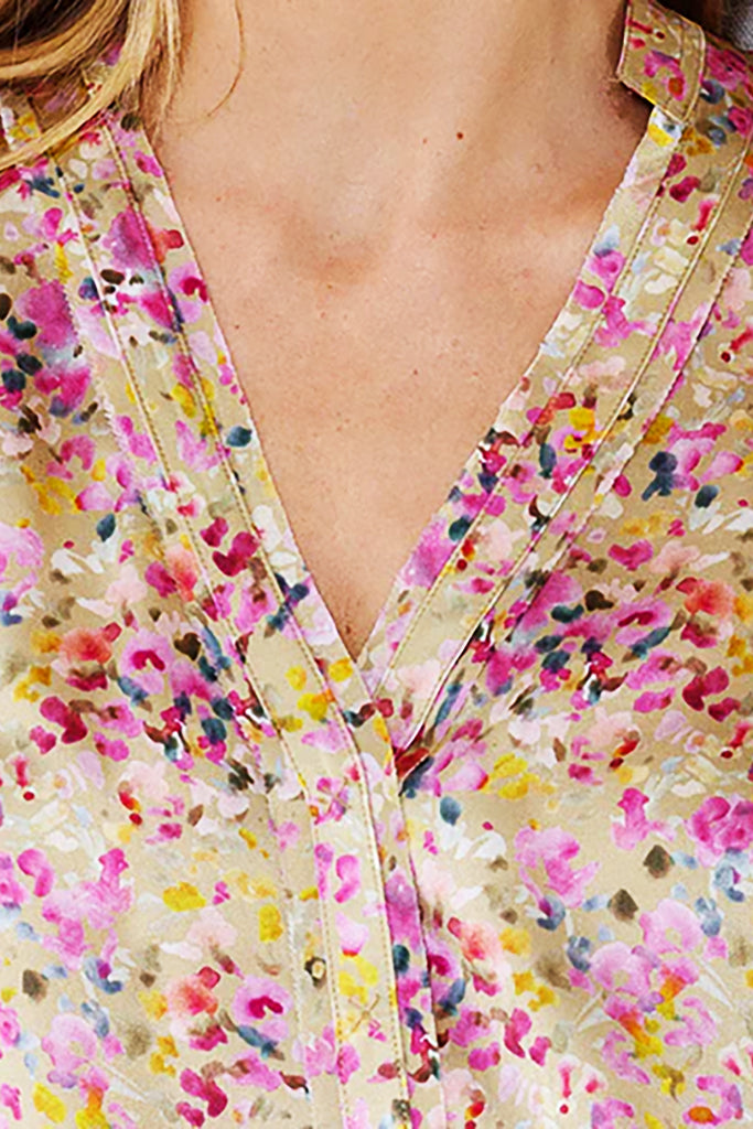 The shape is just as thoughtful. A flattering V neckline that works beautifully for fuller busts, an airy, easy cut, and softly flared three-quarter sleeves all come together to create something that feels polished yet relaxed. This pretty piece moves seamlessly from desk to dinner without the need to overthink it.