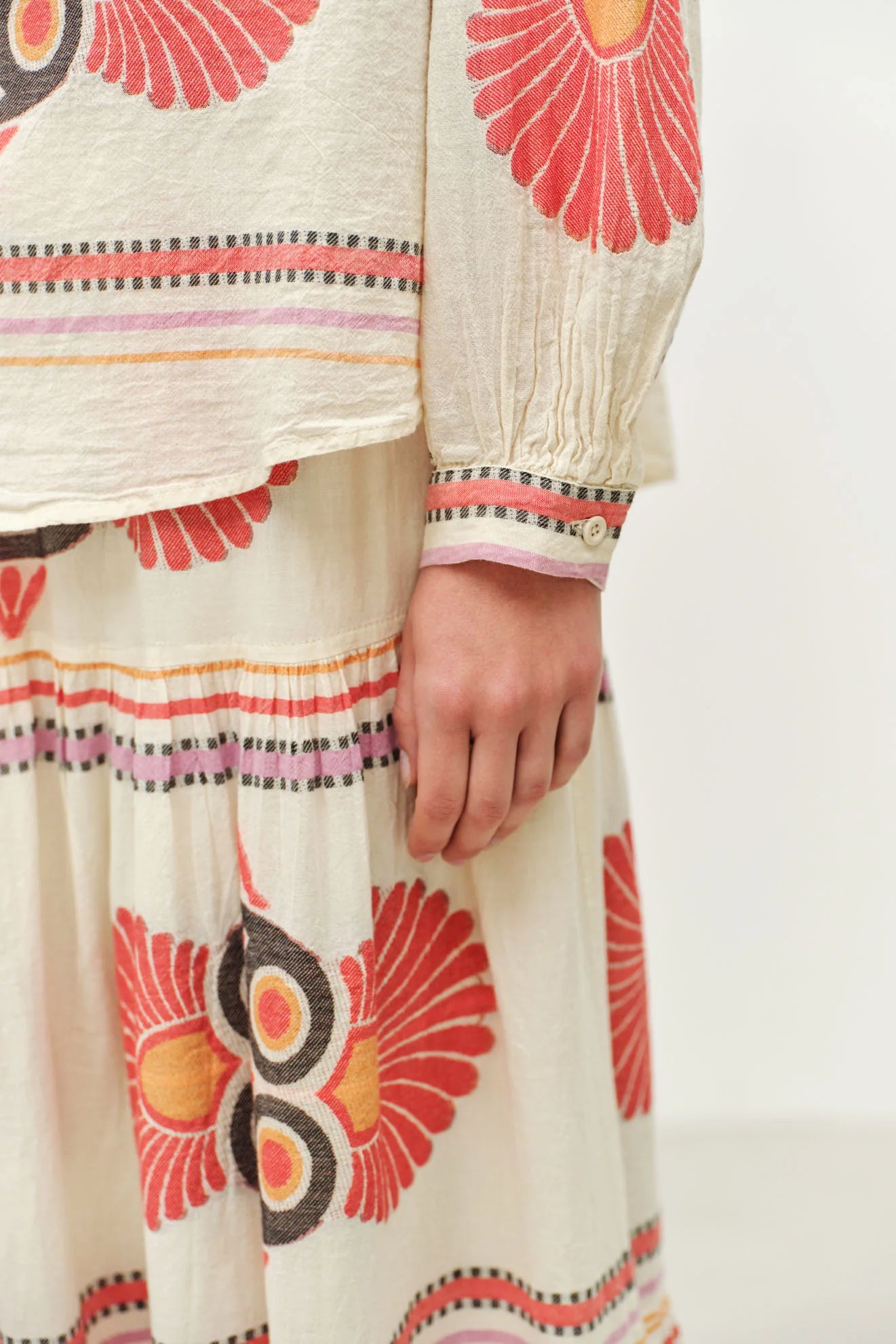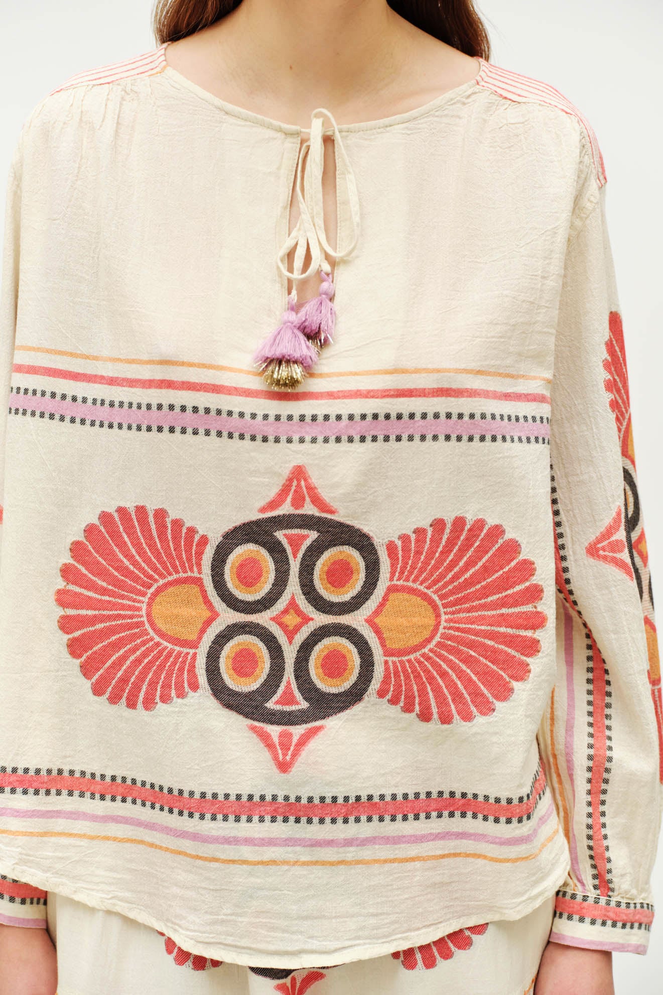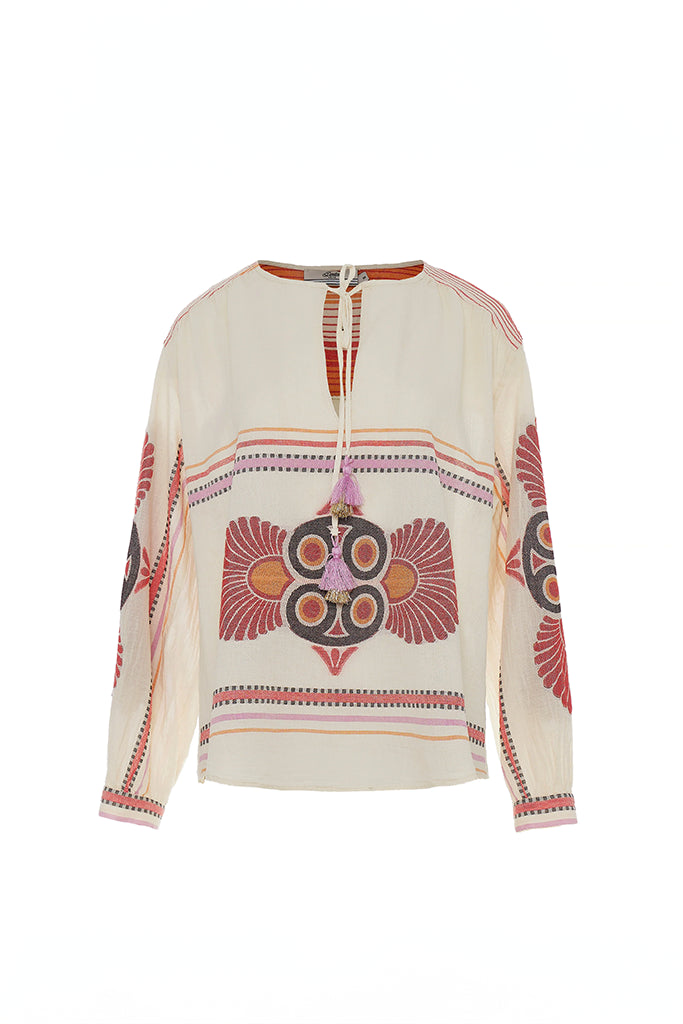 The Dilos blouse is Devotion Twins at its best - ethically made cotton, an easy, relaxed fit, and all the thoughtful, artisan details the brand is known for. The earthy oranges and reds feel warm and grounded, while the distinctive woven pattern pays tribute to the label’s Grecian roots in the most beautiful way.