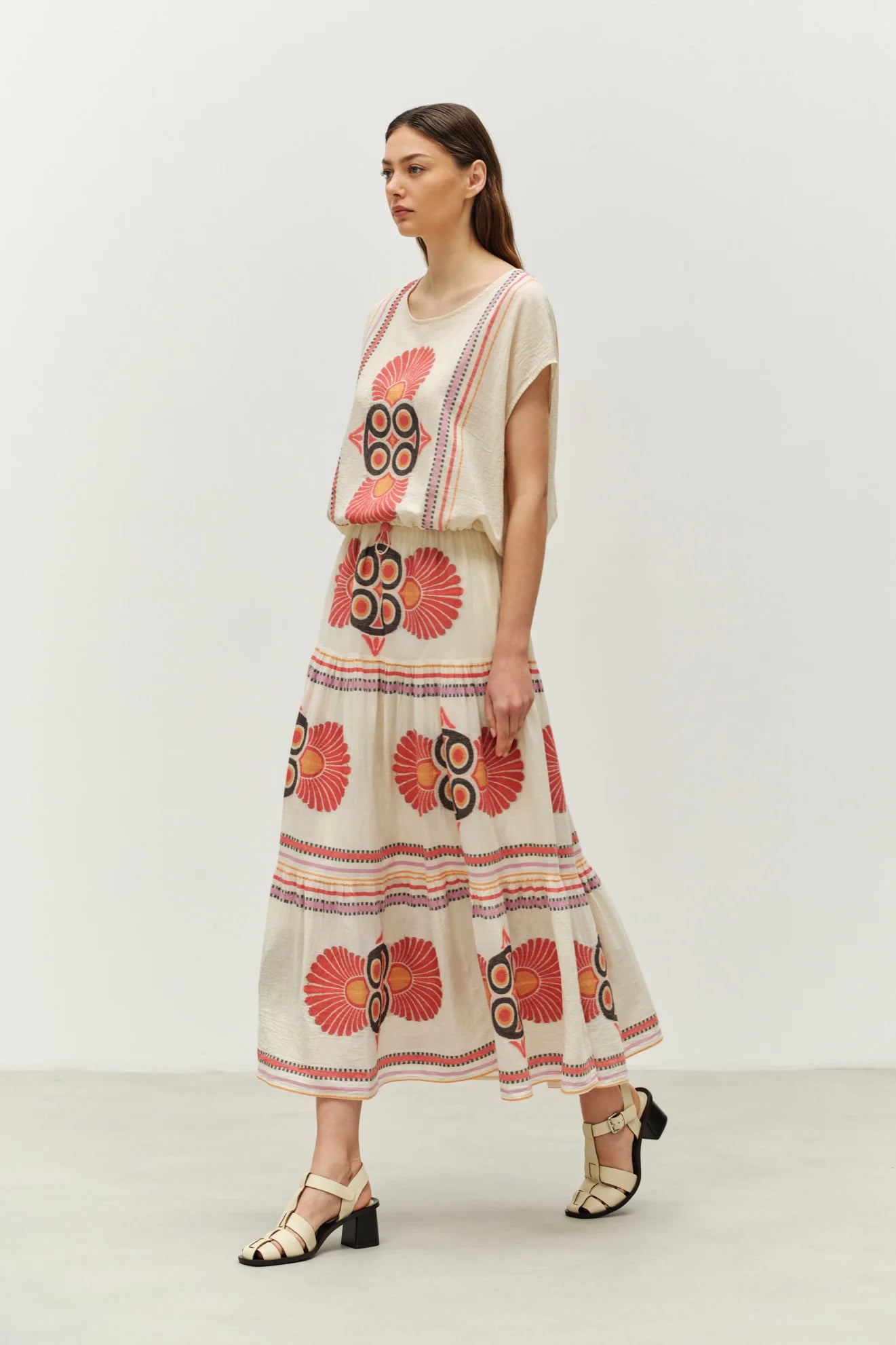 The tiered silhouette gives it natural movement, while the elastic waistband keeps things comfortable and fuss-free. It’s an ideal summer staple - light, wearable, and one you’ll likely reach for again and again.