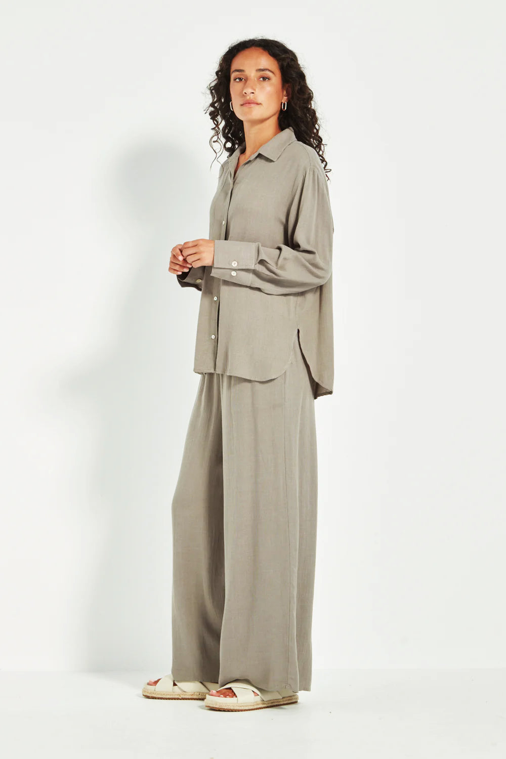 Relaxed elegance in every detail. The Cayman Pant from Verge is cut in a soft weave mesh and designed with a full-length, wider leg silhouette, elasticated waistband, and slant side pockets for everyday ease. Fully lined in self-fabric for a fluid, seamless feel. Complete your look by pairing it with the coordinating Cayman Shirt or Vest for a chic, fuss-free refined outfit.
